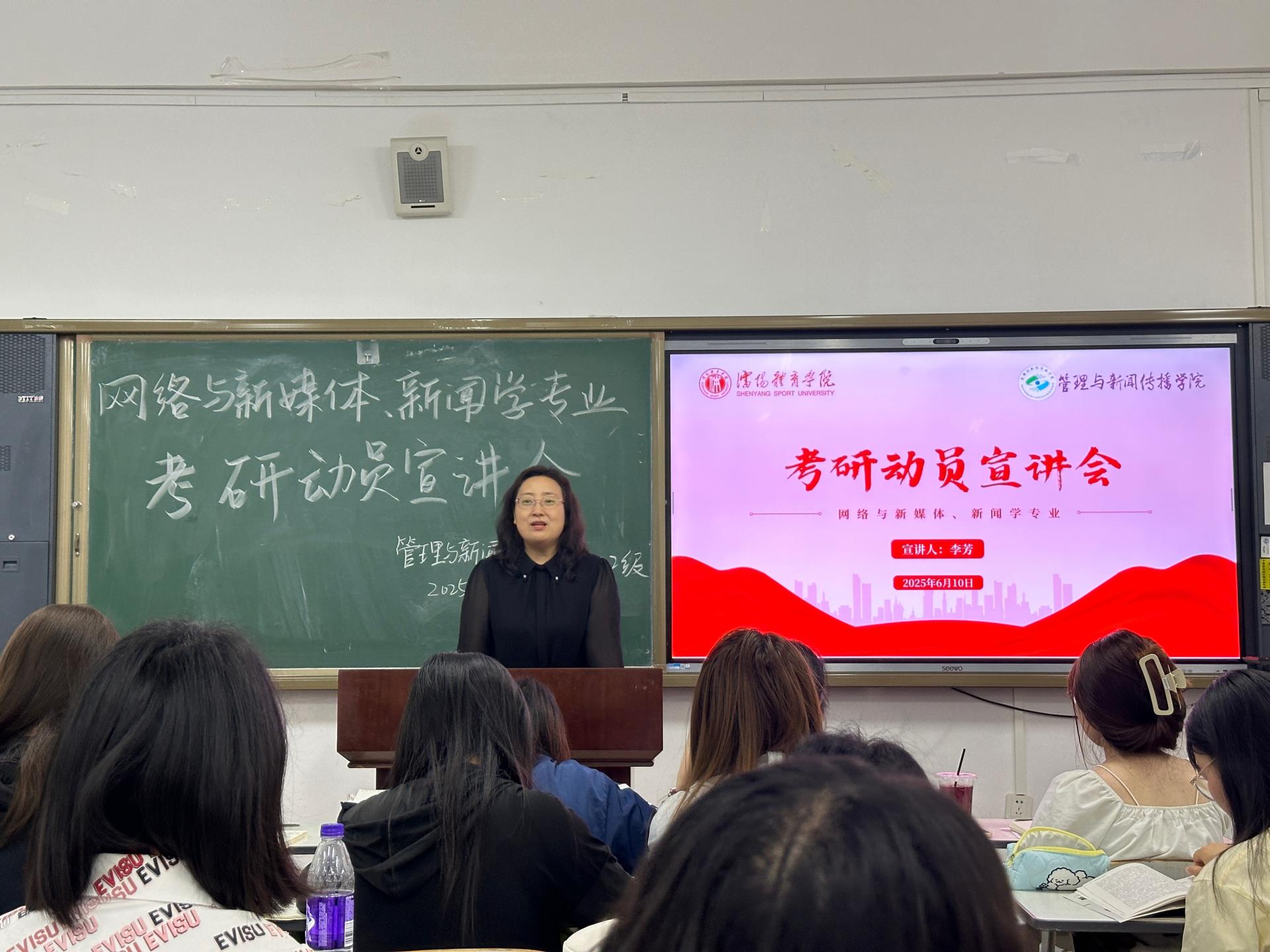 院长李芳为网络与新媒体、新闻学专业学生作宣讲,结合自身经历、近几年考研升学数据、就业形势,以及往届毕业生考研案例,分析了不同院校的招生政策及地域资源,建议学生结合自身实际与职业规划理性选择目标院校。