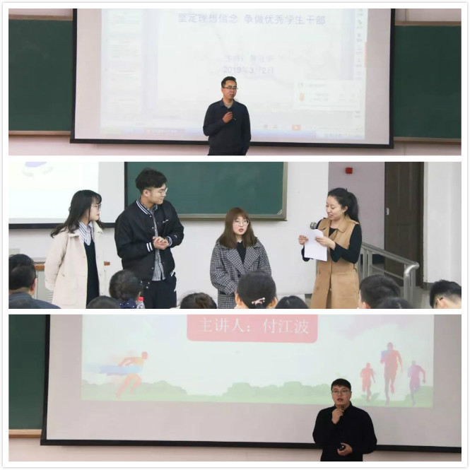 黄冠华以“坚定理想信念,争做优秀学生干部”为主题,围绕着“坚定理想信念是作为一名优秀学生干部所必备的素养”,阐述了理想信念与优秀学生干部的关系。曹悦以“高校学生干部的角色发展”为主题展开讲座,详细讲解了关于高校学生干部角色的发展,增强学生干部的角色代入感,并指出了学生干部存在的一些问题,强调学生干部要不断提升综合素质,努力成为更优秀的自己。付江波以“学生会文化建设”为主题,深刻阐释了组织文化在组织发展和个人成长中的重要作用,指出学生会文化是在工作职责和情感维系下共同理想的综合体系,从宏观和微观上提出了学生会文化建设的策略,讲座最后为大家分享了学生会文化建设日常注意事项。
