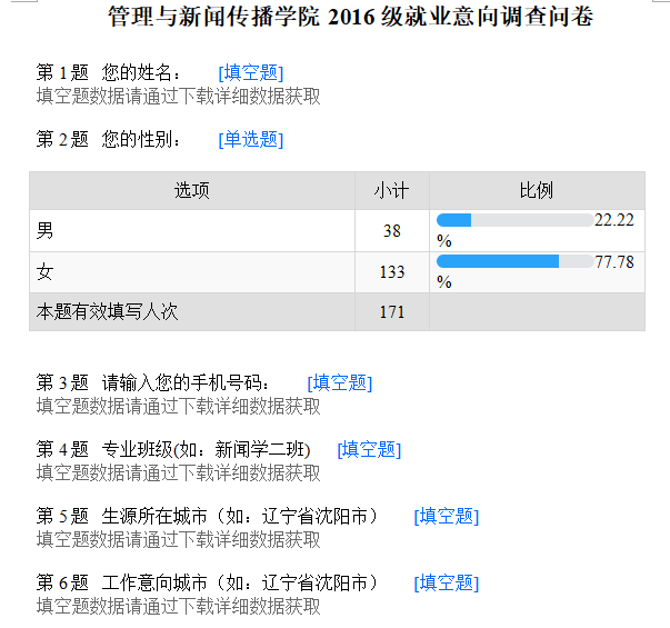 为全面了解毕业生的求职意向和就业现状,发现学生的就业需求和目前存在的困难,能够更好地为学生提供精准度就业指导,我院从3月22日开始对2016级学生进行了就业意向问卷调查与数据统计工作。