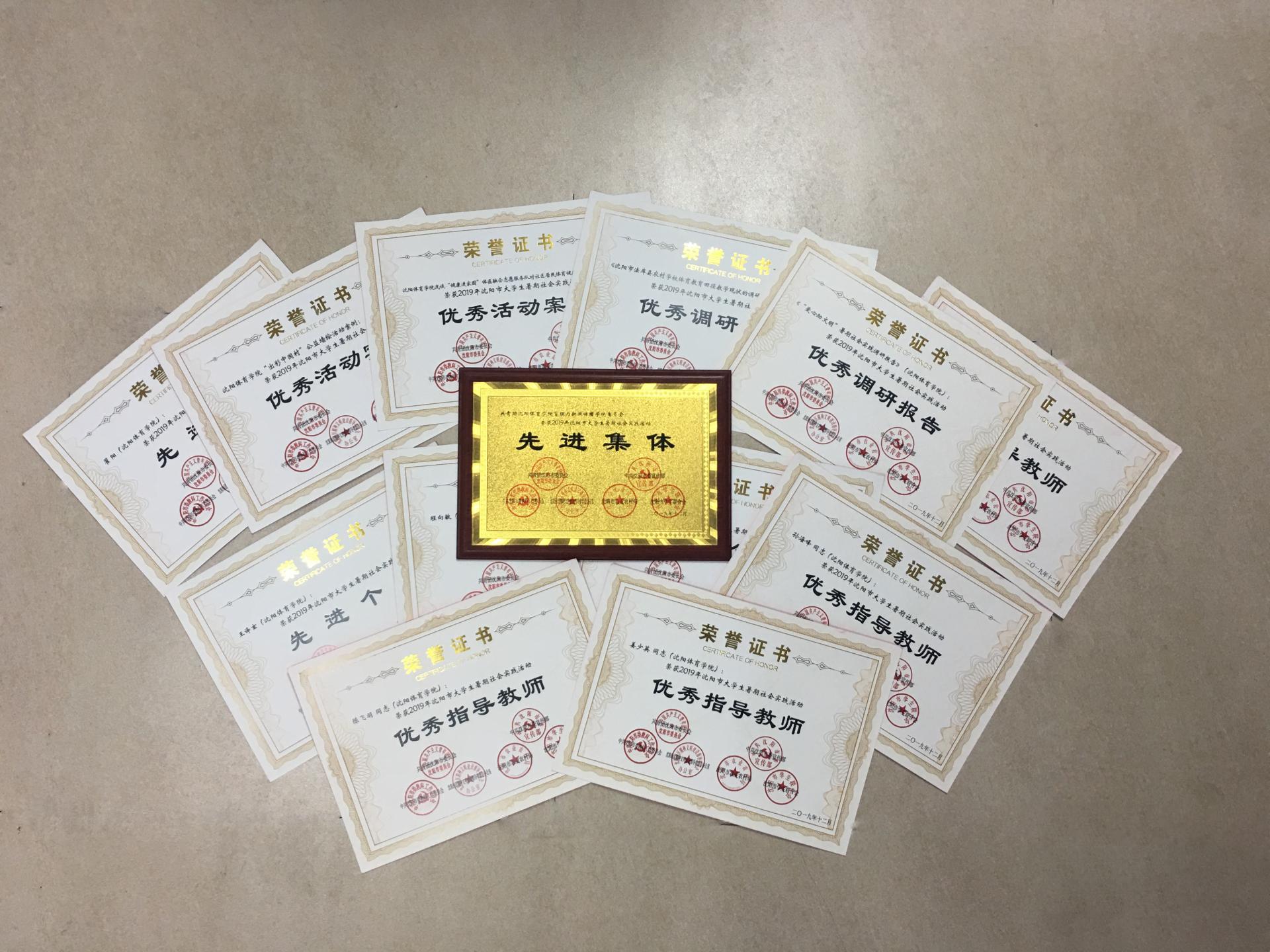 在2019年沈阳市大学生暑期社会实践活动中,我校开云kaiyun官网获“先进集体”称号;校团委韩健同志、体育教育学院姜少英同志、运动人体科学学院陈飞羽同志、社会体育学院孙海峰同志获“优秀指导教师”称号;体育教育学院撰写的调研报告《沈阳市法库县农村学校体育教育田径教学现状的调研报告》、运动人体科学学院撰写的调研报告《“爱心助文明”暑期社会实践》获得“优秀调研报告”;运动训练学院申报的活动案例《浅谈“健康进家园”体医融合志愿服务队对社区居民体育健康的作用》、开云kaiyun官网申报的活动案例《“出彩中国村”公益墙绘》获得“优秀活动案例”;王译玄、翟阳、程向敏、王子嘉4名同学获“先进个人”称号。